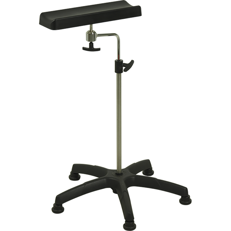 Black injected rubber armrest, with dimensions 350 x 120 mm. Removable and adjustable in all directions and height by means of a fixing knob.