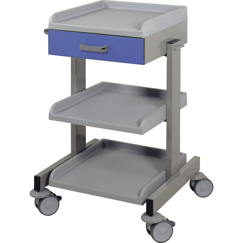 Carro de diseño ergonómico con disposición de columnas permitiendo un óptimo acceso a los estantes desde los 4 lados del carro.