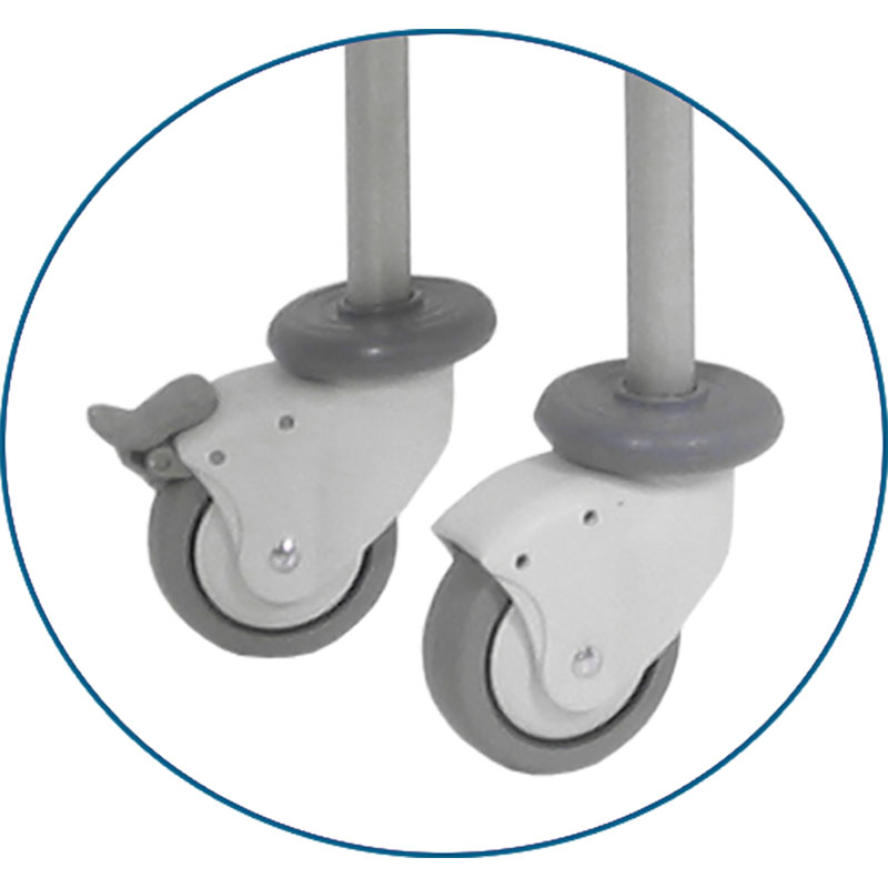Jeu de 4 roulettes des différents diamètres, dont deux avec freins